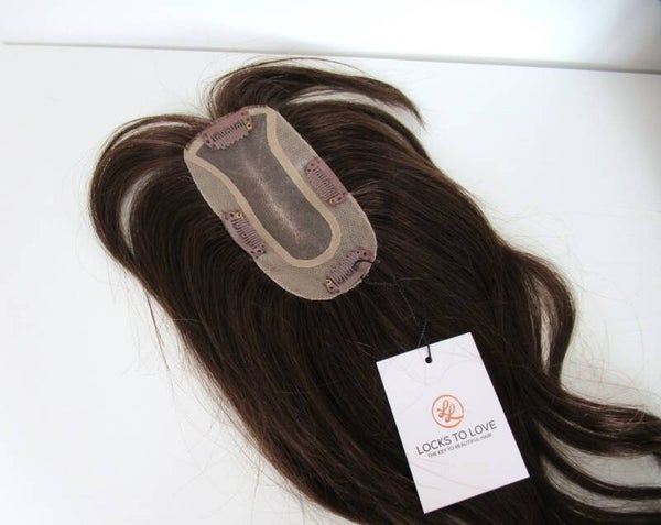Dit haarstukje is gemaakt van zijdezacht Indiaas echt mensenhaar. Het is wat smaller van formaat en zeer geschikt als je last heb van dun haar rondom de scheiding, maar ook als je een uitgroei wil verbergen.